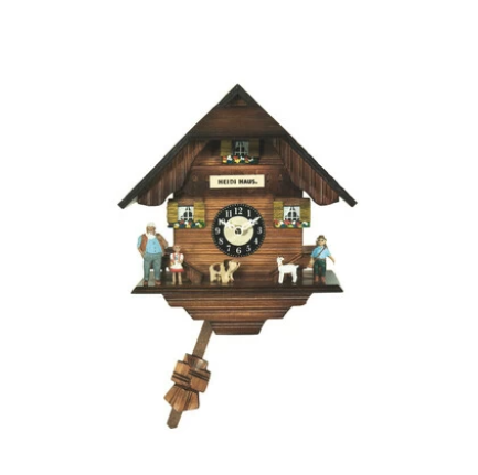 Orologio a cucù mini Foresta Nera Casa di Heidi colorata Movimento al quarzo Cassa in legno intagliata e lavorata a mano Suoneria a scelta solo all'ora piena, cucù o Westminster