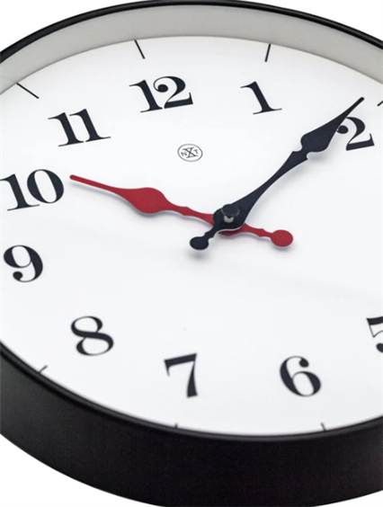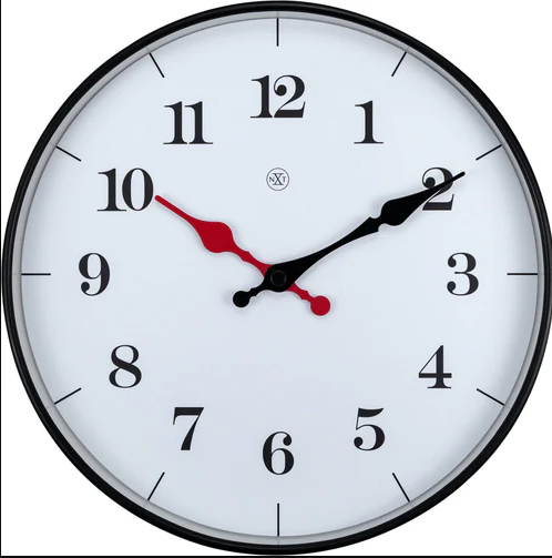 NEXT TIME CLOCKS BERNARD orologio da parete al quarzo funzionante con 1 batteria AA (non inclusa) The nXt "Bernard" is a round platic wall clock (¯ 25 cm). The white dial with black numbers makes this clock fit in many interiors. The single red hand gives a nice detail and because of the clear hour indication time is easy to read from a distance. It runs on 1x AA battery (not included).