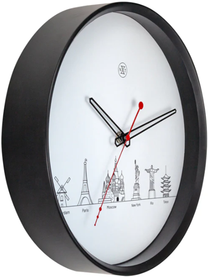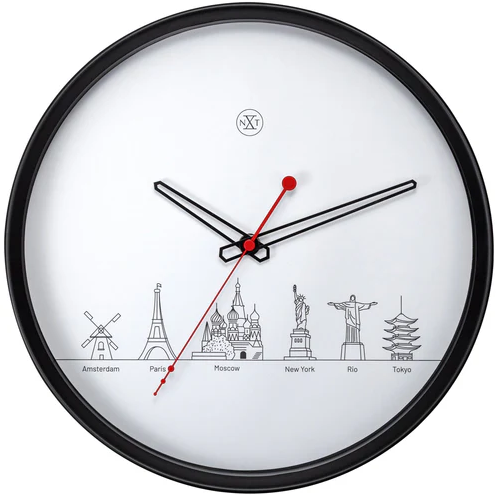 NEXTIME CLOCKS WORLDTOUR orologio da parete al quarzo con movimento silenzioso funzionante con 1 batteria AA (non inclusa).