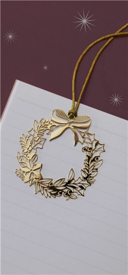 Segnalibro in metallo cesellato e traforato intorno alla magia del Natale.