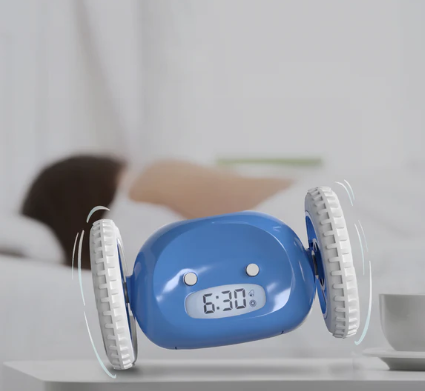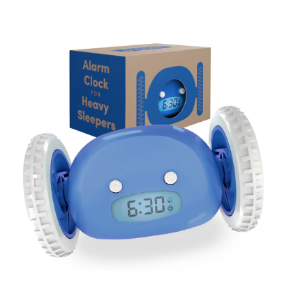 Clocky è la sveglia che scappa via suonando per farti alzare dal letto. La maggior parte delle persone "abusa" della funzione snooze ogni mattina. Clocky non ti fa più dormire troppo. Se la posticipi, Clocky salterà giù dal tuo comodino e scapperà suonando, assolutamente determinata a farti alzare dal letto in tempo. Scappa emettendo un segnale acustico sul tappeto o sul legno Resistente! Salta da 90 cm di altezza Forte suono robotico simile a R2D2 Opzione per posticipare una volta o disattivare la funzione snooze Opzione per disattivare le ruote/funzione di allontanamento