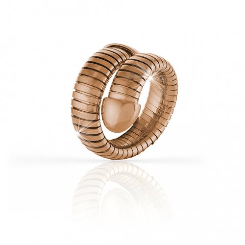 UNOAERRE FAHION JEWELRY Collezione TUBOGAS Anello contrarié aperto in bronzo con galvanica in oro rosa. Misura regolabile da 14 a 20.