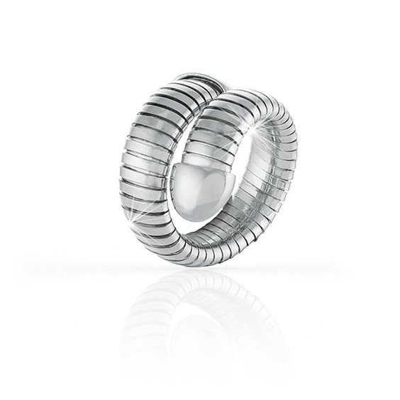 UNOAERRE FAHION JEWELRY Collezione TUBOGAS Anello contrarié aperto in bronzo con galvanica in oro bianco. Misura regolabile da 14 a 20.