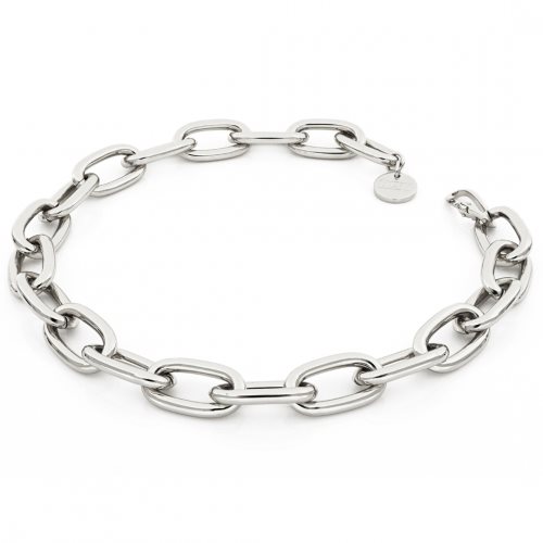 Collana in bronzo bianco con finitura lucida, catena forzatina con maglia ovale 2.5 cm. Chiusura con moschettone integrato nella maglia. Il design minimal di questa collana è perfetto se ami l'eleganza essenziale. Quando le tendenze fashion incontrano il mondo rock'n roll. Metal: Bronze Colore: White Length: 45 cm Plating: 925 sterling silver Finishing: Polished finishing Anchoring system: casted lobster clasp