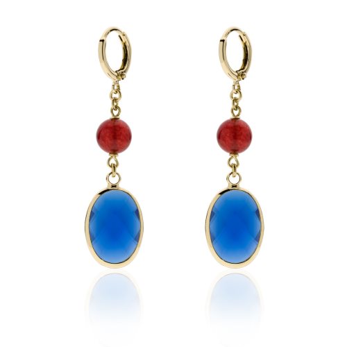 Orecchini lunghi con pietra blu e perla rossa Jaipur Orecchini pendenti con pietra blu e perla rossa. Bagno galvanico in oro, chiusura a monachella. Questi splendidi Chandelier si ispirano ai magici e vibranti colori dell'India sprigionando un'allure unica e speciale. Scopri la collezione UNOAERRE Jaipur ed abbinala ai gioielli con pietre coordinati per un outfit dal fascino esotico!
