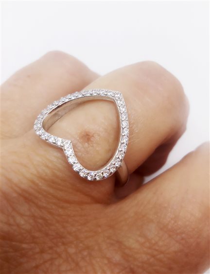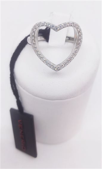 VENERIO ARGENTO Anello cuore in argento rodiato 925 galvanica con cuore vuoto in contorno di cistalli bianchi. Anello aperto misura regolabile.