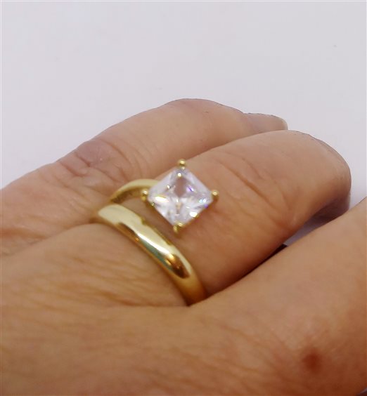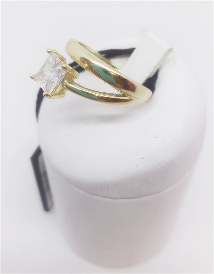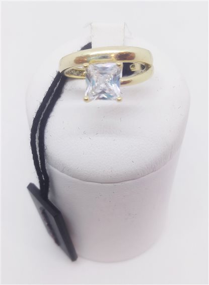 VENERIO ARGENTO Anello in argento 925 galvanica oro giallo con pietra centrale bianca in cristallo taglio carré.