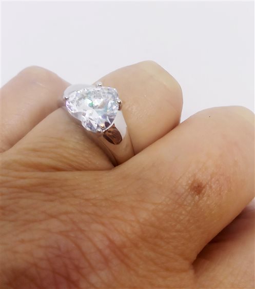 VENERIO ARGENTO Anello in argento 925 rodiato con pietra centrale in cristallo taglio cuore. Montatuta a griffes.
