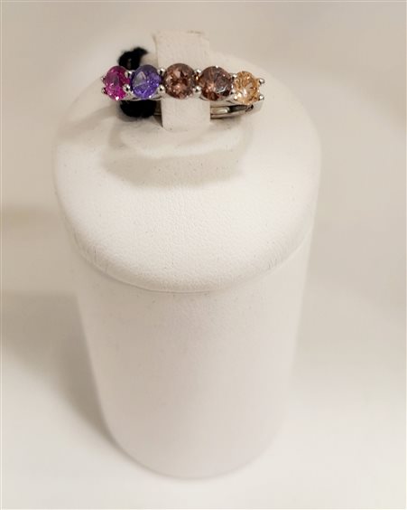 Fedina in argento cinque pietre colorate. Gambo aperto che consente di regolare la misura.