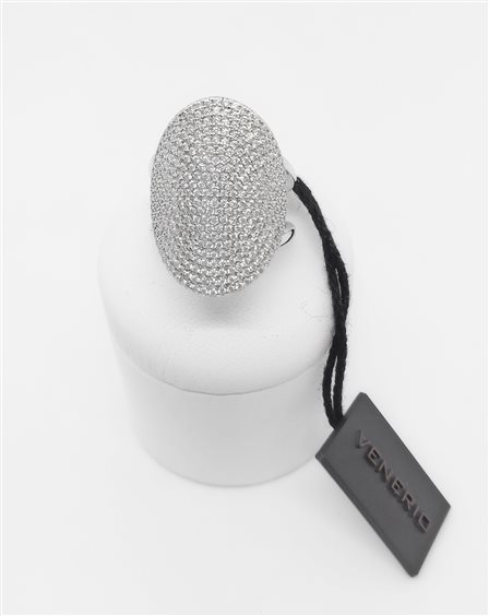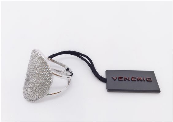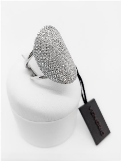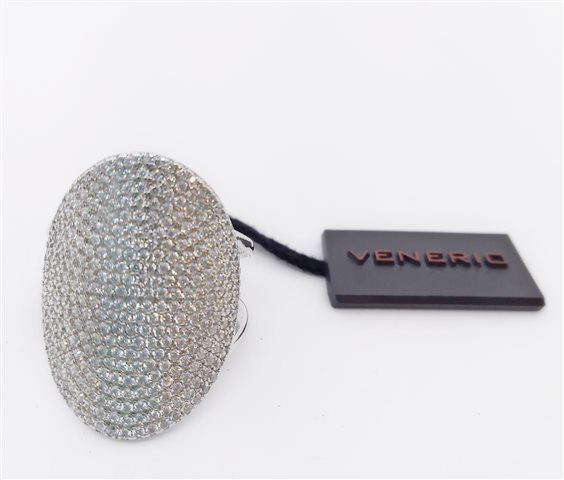 VENERIO ARGENTO Anello in argento 925 rodiato con pavè ovale cm 2.5x2 in cristalli bianchi. Misura 14