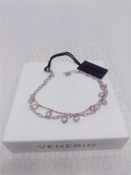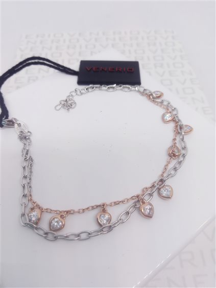 VENERIO ARGENTO Bracciale in argento 925 a due fili, bianco rodiato e in bagno oro rosa 18 kt con chokers a cuore. Chiusura con moschettone, prolunga 3 cm. Anallergico, nichel free.
