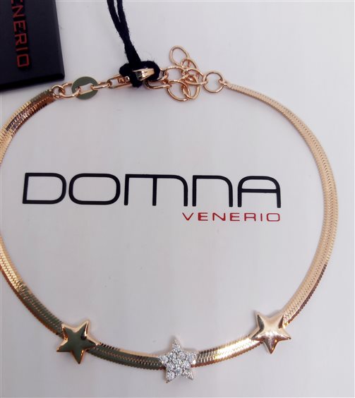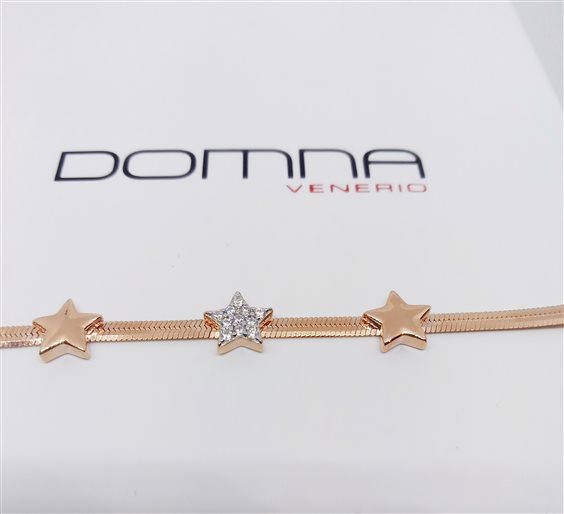 VENERIO ARGENTO Bracciale maglia piatta con tre stelline. Argento 925 in bango oro rosa 24 kt. Chiusura con moschettone, prolunga 3 cm. Gioiello anallergico, nichel free.