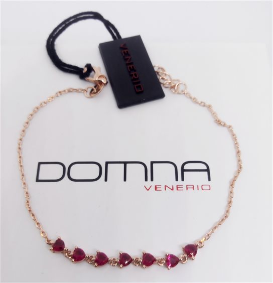 VENERIO ARGENTO Bracciale maglia forzatina diamantata con sette cuori rossi. Argentp 925 in bagno oro rosa 24 kt. Chiusura con moschettone, prolunga 2 cm. Gioiello anallergico, nichel free. Disponibile sullo shop girocollo coordinato.
