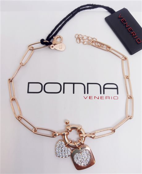 VENERIO ARGENTO Bracciale maglia forzatina rettangolare con chokers in pavé di zirconi inseriti e rimovibili in moschettone tondo centrale. Argento 925 in bagno oro rosa 24 kt. Chiusura con mschettone, prolunga 3 cm. Gioiello anallergico nichel free. Disponibile sul sito girocollo coordinato.