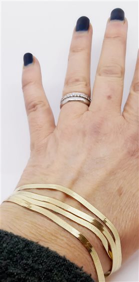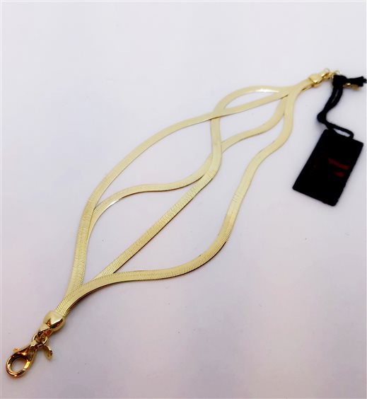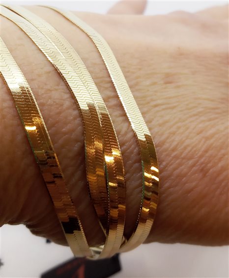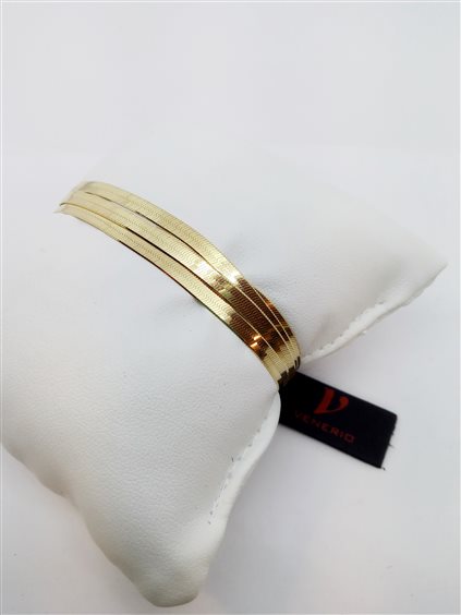 VENERIO ARGENTO Bracciale a quattro fili in maglia coda di topo piatta in argento 925 placcato oro giallo 24kt. Chiusura con moschettone. Lunghezza cm 17 con prolunga in maglia rolò 3 cm