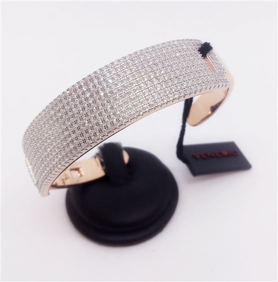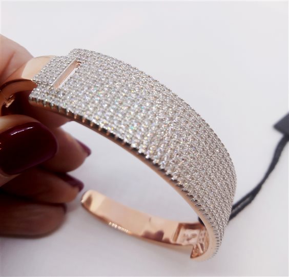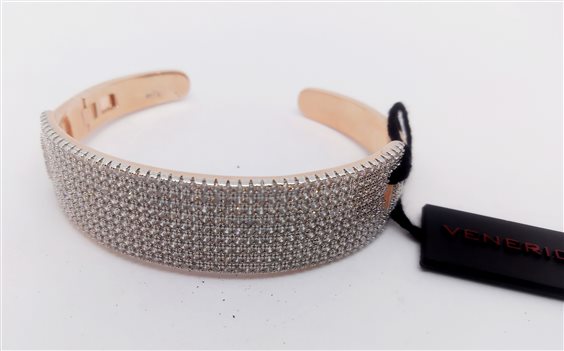 VENERIO ARGENTO Bellissimo bracciale rigido a schiava in argento 925 placcato oro rosa. Piastra con pavé di zirconi (7x1.5 cm). Cerniera a scatto per facilitare l'indosso. Gioiello anallergico, nichel free
