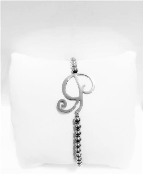VENERIO ARGENTO 925 Bracciale della collezione What's your name Boules d'argento montate su elastico con lettera R centrale in lastra piatta. Dimensione del centrale cm h2.5x2 circa