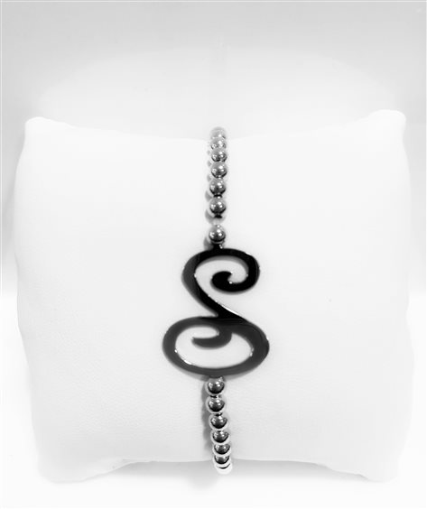 VENERIO ARGENTO 925 Bracciale della collezione What's your name Boules d'argento montate su elastico con lettera S centrale in lastra piatta. Dimensione del centrale cm h2.5x2 circa