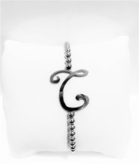 VENERIO ARGENTO 925 Bracciale della collezione What's your name Boules d'argento montate su elastico con lettera T centrale in lastra piatta. Dimensione del centrale cm h2.5x2 circa