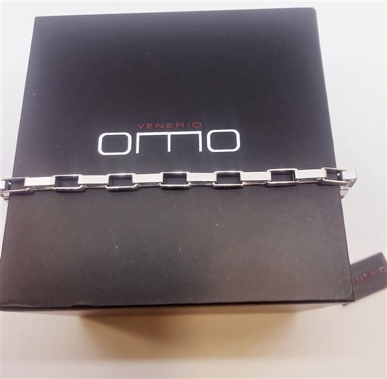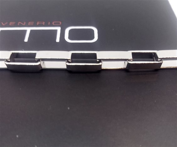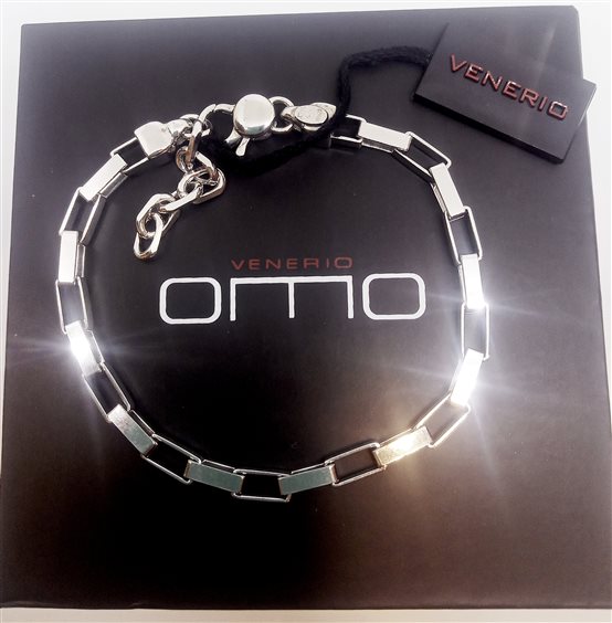 VENERIO ARGENTO COLLEZIONE OMO Bracciale maglia forzatina rettangolare (maglia 0,7 cm). Argento 925 rodiato. Chiusura con moschettone, prolunga 3 cm. Gioiello anallergico, nichel free.
