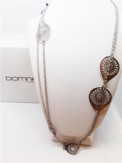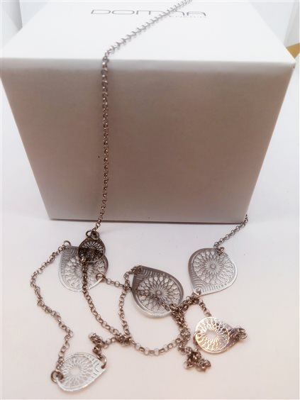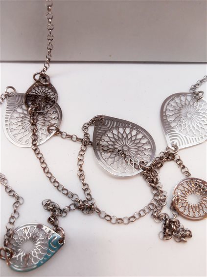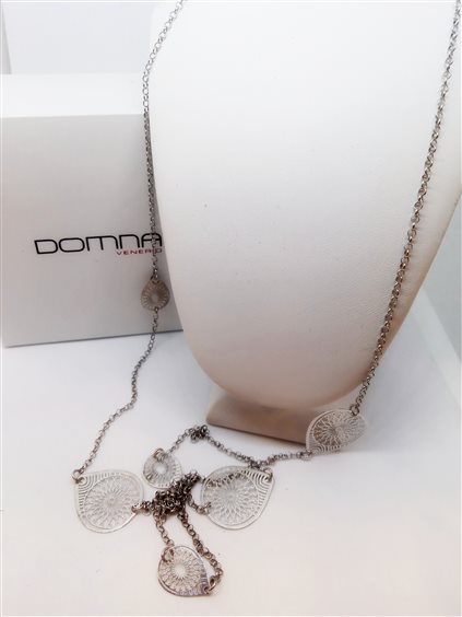 VENERIO ARGENTO Collana lunga in argento rodiato 925, ultralight senza chiusura con elementi a goccia filigranati. Maglia catena rolò. Gioiello anallergico, nichel free.