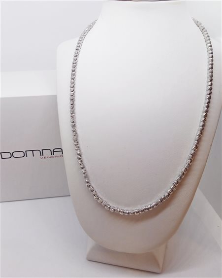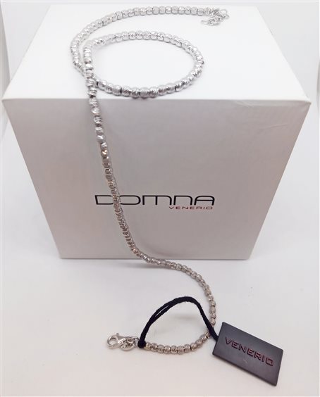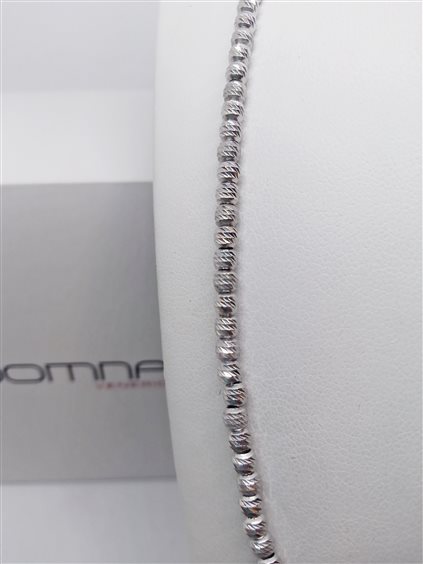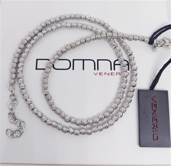 VENERIO ARGENTO Girocollo sfere diamantate infilate su cavetto in argento 925 rodiato. Chiusura con anello moschettone, prolunga 3 cm. Gioiello anallergico, nichel free. Disponibile sullo shop bracciale coordinato.