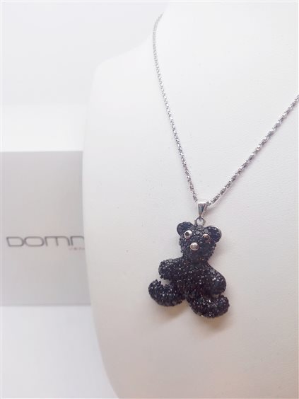 VENERIO ARGENTO Girocollo Bear in argento 925 rodiato con pendente orsetto in pavé di zirconi neri. Catena maglia cordoncino diamantato, chiusura con anellino a molla. Gioiello anallergico, nichel free.