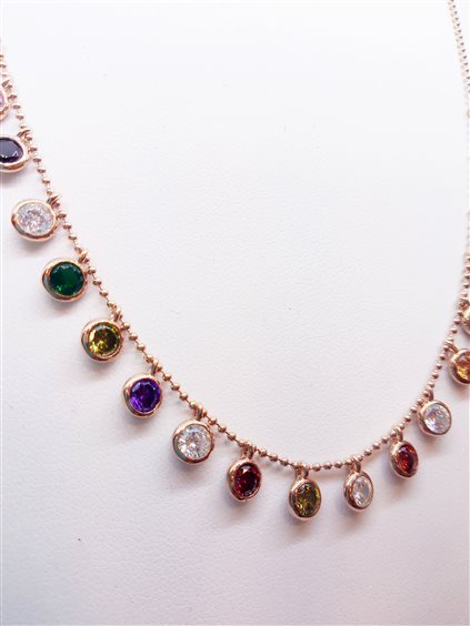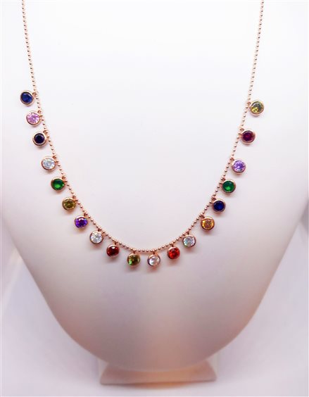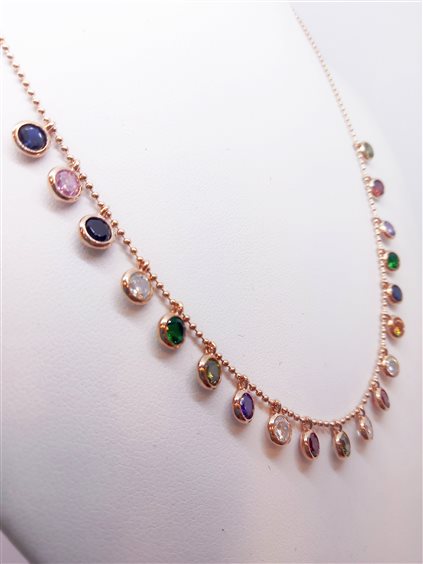 VENERIO ARGENTO Girocollo in argento 925 con galvanica in oro rosa. Catena a palline con choker tondi in cristallo multicolor. Chiusura con moschettone, prolunga 5cm. Gioiello anallergico, nichel free.