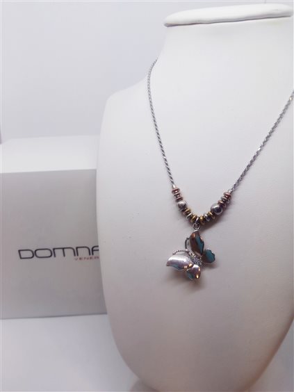 VENERIO ARGENTO Girocollo in argento rodiato 925. Catena maglia cordoncino, centrale farfallina con zirconi. Chiusuraa con moschettone, prolunga 6 cm. Gioiello anallergico, nichel free.