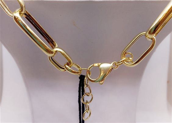 VENERIO ARGENTO Girocollo a catena con maglie rettangolari in argento 925 placcato oro giallo 24kt. Misura 42 cm con prolunga in maglia rolò 3 cm. Chiusura con moschettone