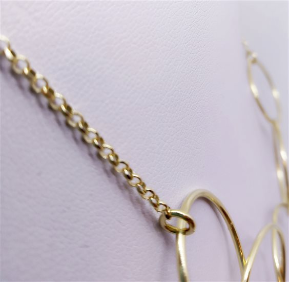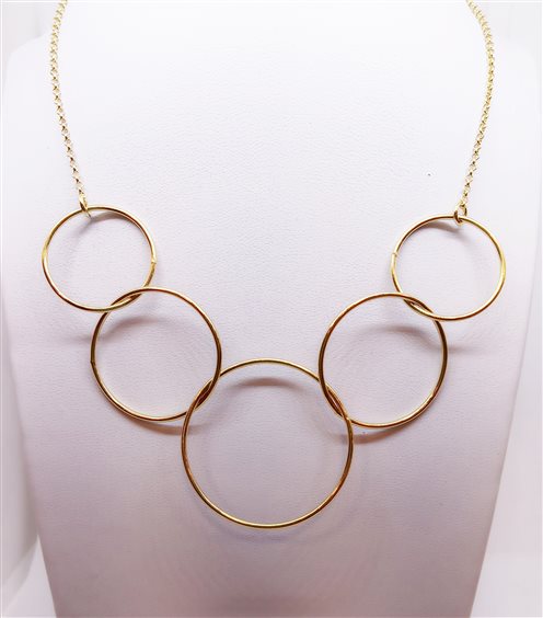 VENERIO ARGENTO Girocollo in argento 925 placcato oro giallo 24kt. Base catena forzatina diamantata con 5 cerchi a scalare inseriti nella parte centrale. Chiusura con moschettone. Lunghezza 39 cm con prolunga 5 cm.