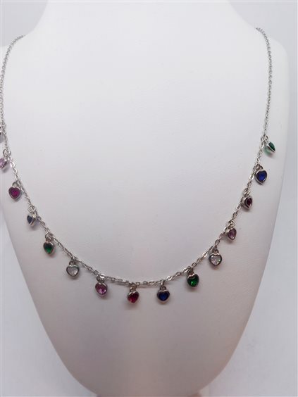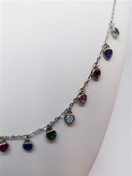 VENERIO ARGENTO Girocollo cuori multicolor in argento rodiato 925 con cuoricini pendenti colorati. Catena maglia forzatina diamantata con prolunga per regolare la lunghezza, chiusura con moschettone. Anallergico, nichel free.