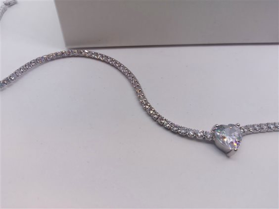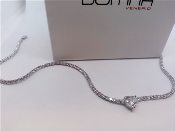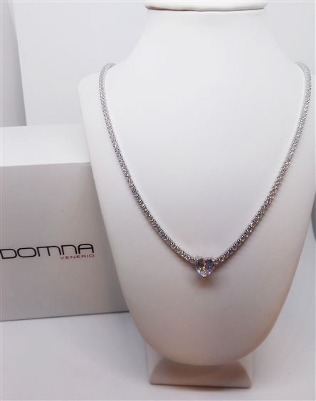 VENERIO ARGENTO Girocollo tennis in zirconi con cuore centrale in cristallo, argento 925 rodiato. Chiusura con moschettone, prolunga 5 cm. Gioiello anallergico, nichel free