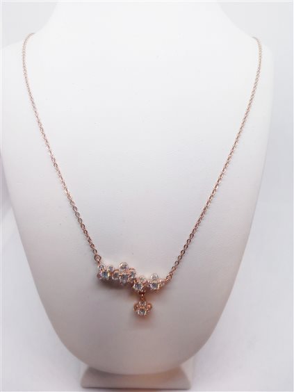 VENERIO ARGENTO Girocollo ramo di fiori in argento 925 in bagno oro rosa 18 kt con rametto di fiori e fiorellino pendente. Catena maglia forzatina diamantata con prolunga 3 cm, chiusura con moschettone. Anallergico, nichel free.