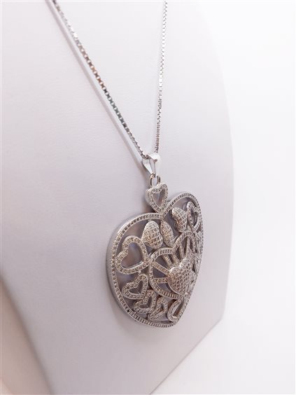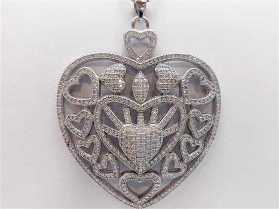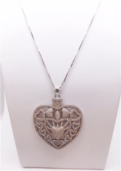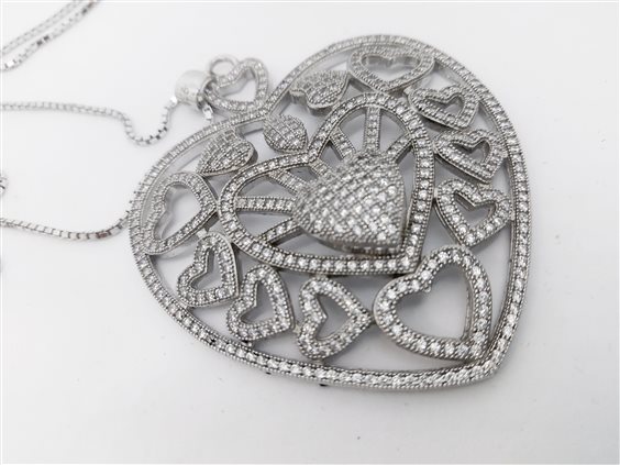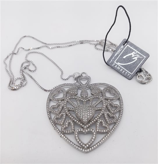 VENERIO ARGENTO Collana Heart in argento rodiato 925. Catena maglia veneta con chiusura ad anellino a molla. Pendente grande a cuore (6x4.5 cm)lavorato con cristalli bianchi incassati a binario e a pavé. Gioiello anallergico, nichel free.