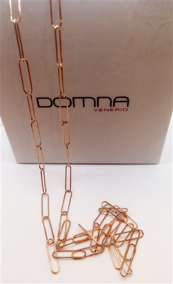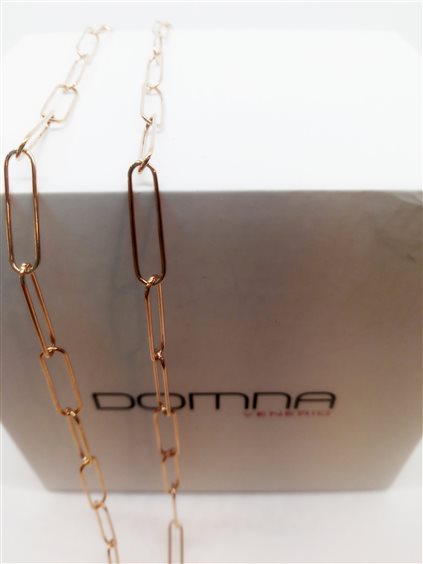 VENERIO ARGENTO Catena maglia forzatina rettangolare ultralight. Argento 925 in bagno oro rosa 24 kt. Chiusura con moschettone che si aggancia anche nelle maglie. Indossabile anche a due giri Gioiello anallergico, nichel free.