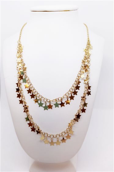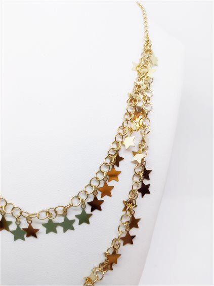 VENERIO ARGENTO Girocollo in argento 925 placcato oro giallo 24kt base catena rolò diamantata con charms a stella inseriti in catena rolò liscia. Chiusura con moschettone, prolunga 5.5 cm.