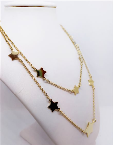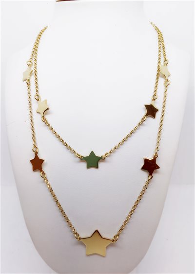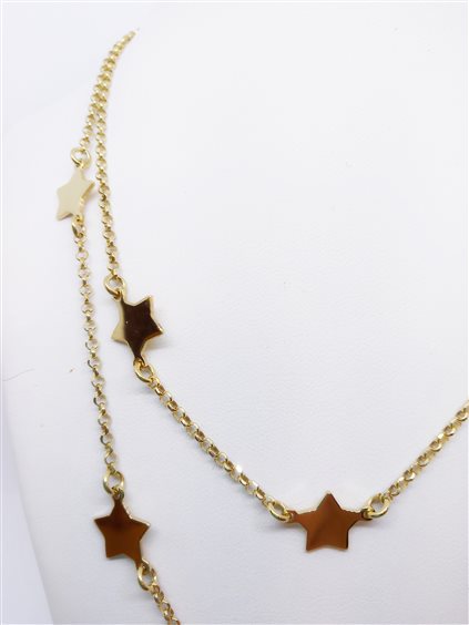 VENERIO ARGENTO Girocollo in argento 925 placcato oro giallo 24kt base catena rolò diamantata con due file di stelle a scalare. Chiusura con moschettone, prolunga 4 cm.