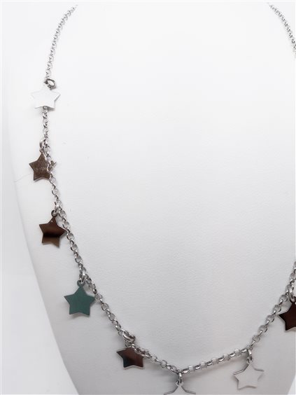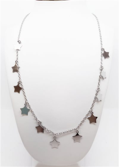 VENERIO ARGENTO Girocollo in argento rodiato 925 base catena rolò diamantata con stelle pendenti. Chiusura con moschettone, prolunga 5.5 cm con finale a stellina.