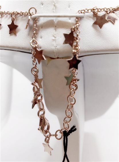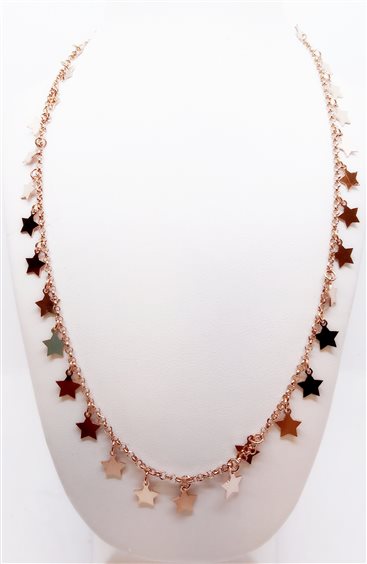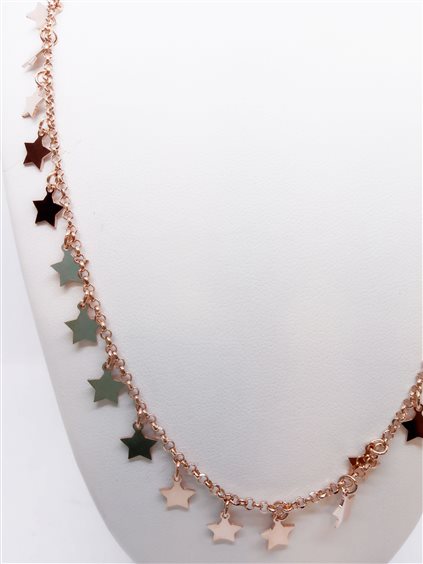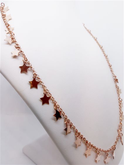 VENERIO ARGENTO Girocollo in argento 925 placcato oro rosé 24kt base catena rolò diamantata con stelle pendenti su tutta la lunghezza. Chiusura con moschettone, prolunga 3cm. con stellina finale.