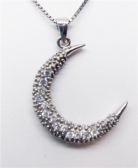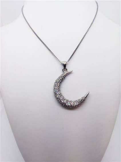 VENERIO ARGENTO Girocollo mezzaluna in argento rodiato 925 con zirconia bianca. catena maglia veneta, chiusura moschettone. Anallergico, nichel free.