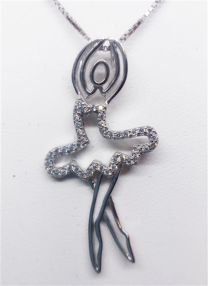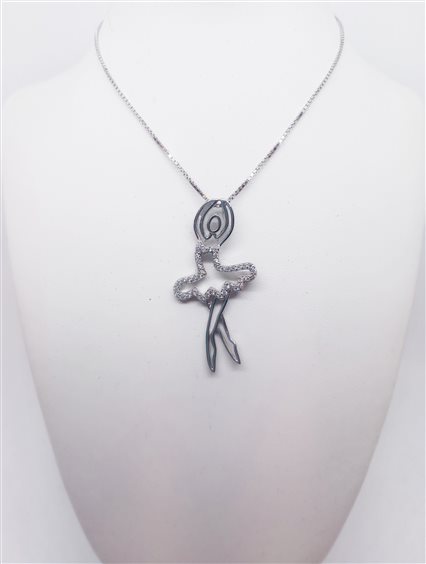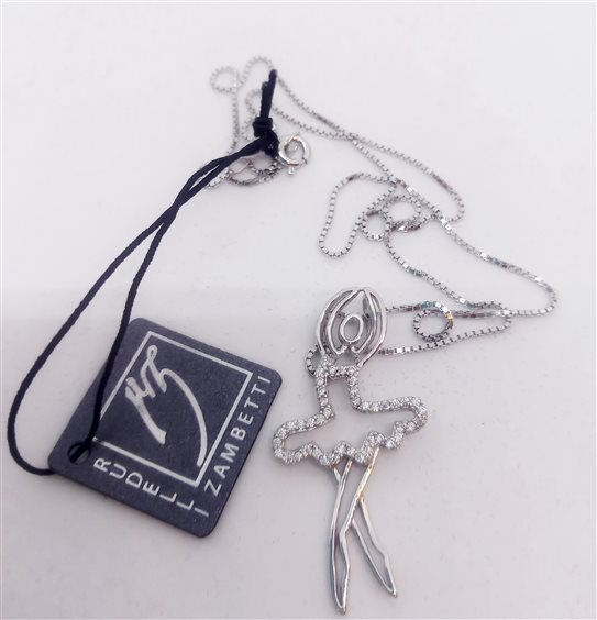 VENERIO ARGENTO Girocollo ballerina in argento rodiato 925 con zirconia bianca. Catena maglia veneta, chiusura con anellino a molla. Anallergico, nichel free.