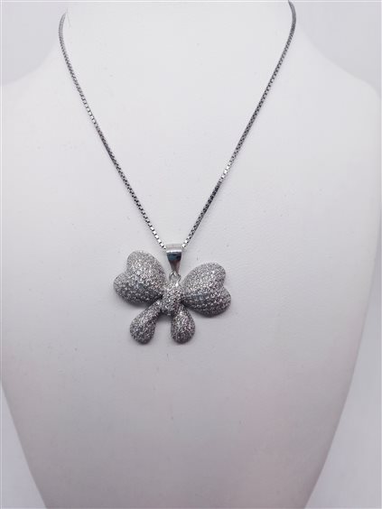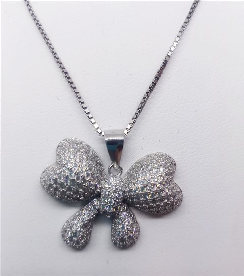 VENERIO ARGENTO Girocollo cuori fiocco in argento rodiato 925 con pavé di zirconia bianca. Catena veneta, chiusura con anellino a molla
