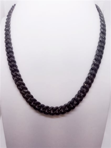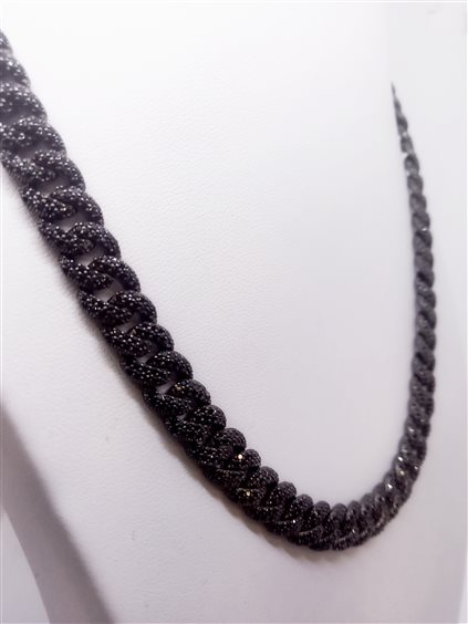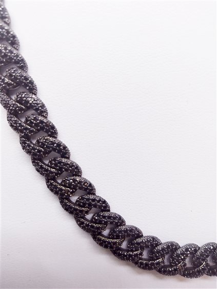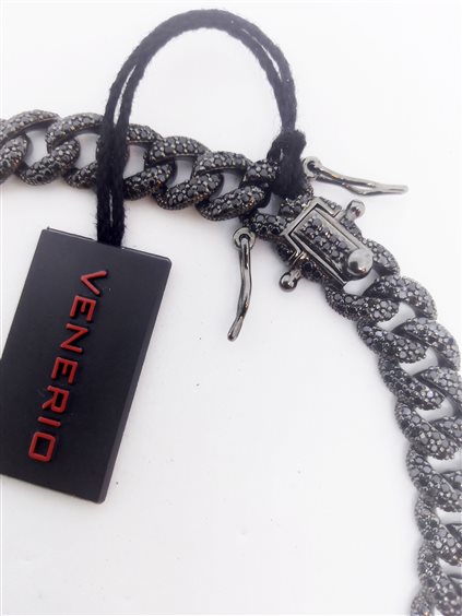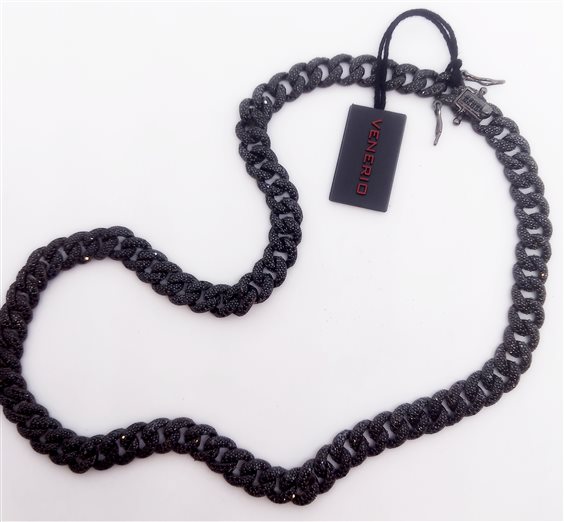 VENERIO ARGENTO Collier Groumette in argento brunito 925 con pavé di zirconi neri. Misura elemento maglia 0.8 cm. Chiusura a scomparsa con doppia sicurezza. Gioiello anallergico, nichel free