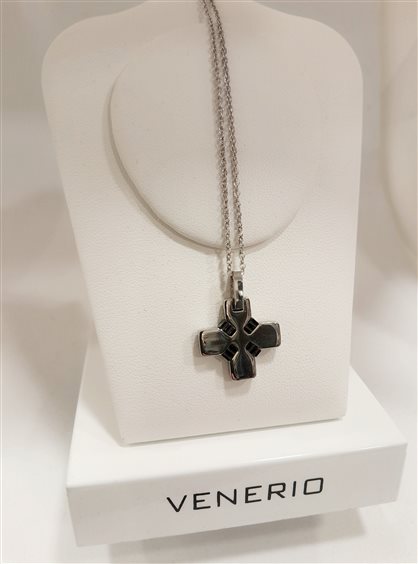 Venerio uomo Girocollo in acciaio croce quadrata. Maglia forzatina lunghezza regolabile 42/45 cm, chiusura con moschettone