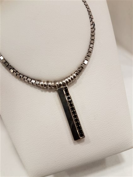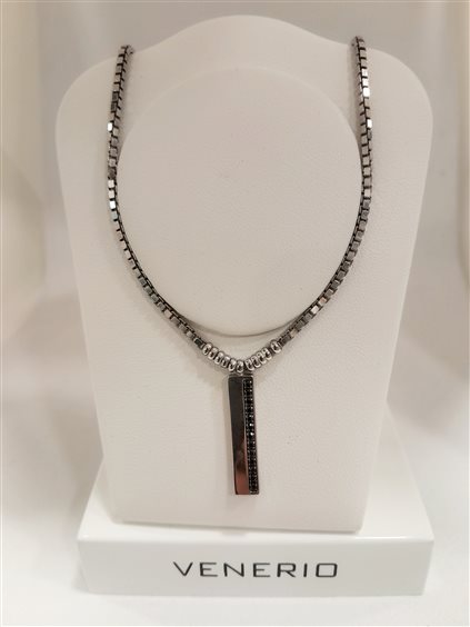 Venerio uomo Girocollo in argento 925, pendente rettangolare con zirconi neri. Maglia veneziana lunghezza regolabile 40/42cm, chiusura con moschettone