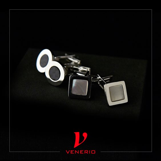 VENERIO ARGENTO Gemelli tondi in argento 925 rodiato con centrale in madreperla bianca.