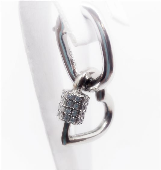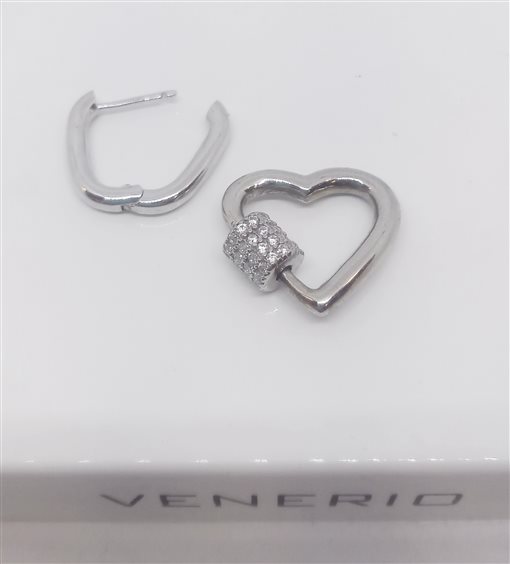 VENERIO ARGENTO Mono orecchino cuore in argento rodiato 925 e zirconi. Il cuore è inserito nell'orecchino base a scattino e può essere tolto e utilizzato come ciondolo. Anallergico, nichel free.