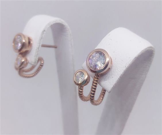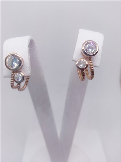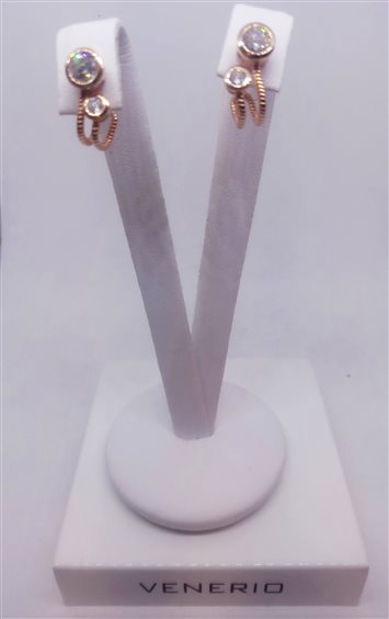 VENERIO ARGENTO Orecchini a lobo in argento 925 in bagno oro rosa 18 kt con pietre bianche. Chiusura con farfallina. Anallergico, nichel free.