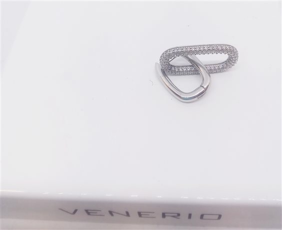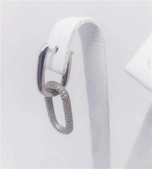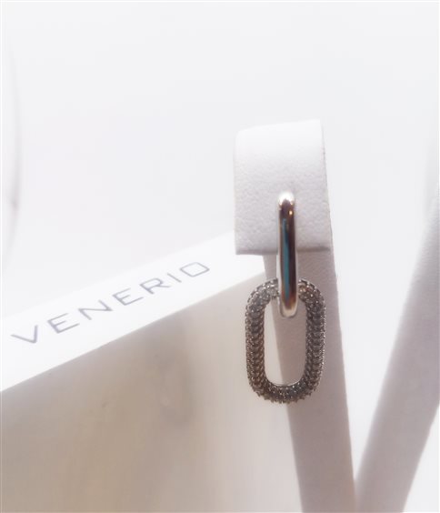 VENERIO ARGENTO Mono orecchino pendente a scattino in argento rodiato 925 con pavé di zirconi composto da un ovale squadrato liscio che contiene l'ovale pendente con pietre removibile e utilizzabile come ciondolo per indossare solo la parte liscia dell'orecchino. Anallergico, nichel free.